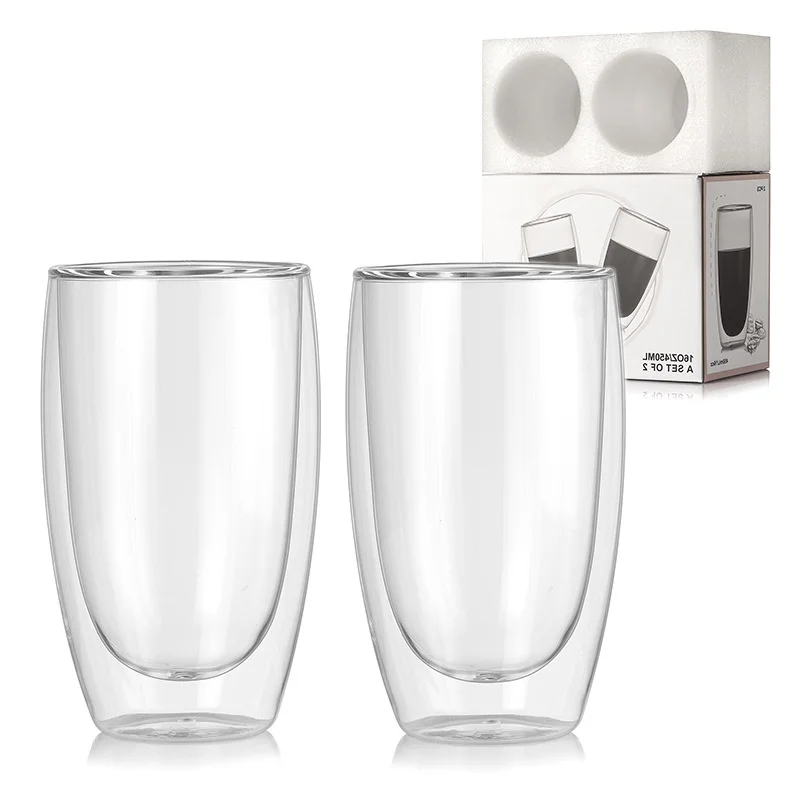 כוסות קפה או תה דו-שכבתיות ברורות ללא יד אחזקה בקיבולת 450 מ