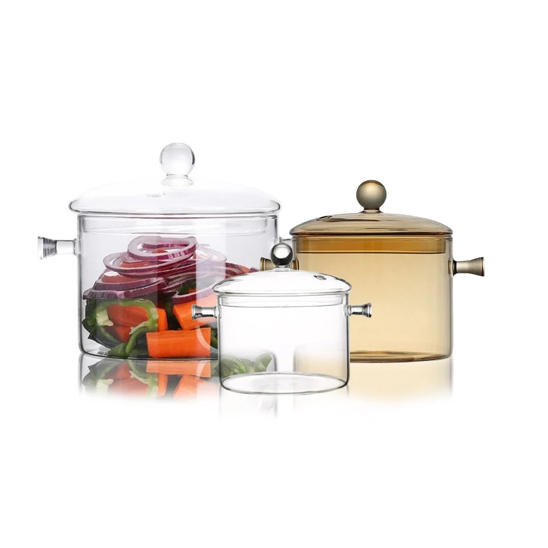 ODM OEM מתחם חימום בורוסיליקט גבוה עם קדירה זכוכית ברורה ושני ידיות זכוכית
