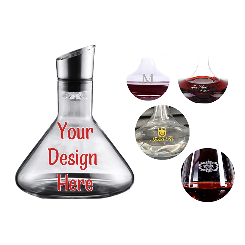 עיצוב האלגנטי של דקאנטר זכוכית יין עם סינון מתכת איירני מסורגל לוגו לפי בקשתך זה בבירור משך עיניים, עם צורה חלקה ומגניבה שמעלית כל סביבת שולחן. יחד עם האפשרות להחליף את הדקאנטר עם הלוגו האישי שלך, זה גורם לו להיות מתנה אידיאלית או אירוע ייחודי.